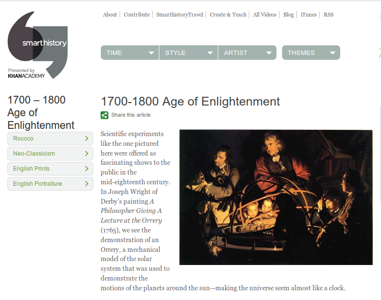 SmartHistory, un blog que surgió en 2005 y que se ha convertido en todo un referente para estudiar Historia del Arte de una manera libre, y desde cualquier lugar del mundo. Surgió como alternativa a los caros y extensos libros de Historia del Arte y se ha transformado en una especie de libro digital, el material que presentan es textual, gráfico y audiovisual a través de vídeos y podcast. Ofrece más de mil videos y artículos sobre el arte de todo el mundo y a través del tiempo.
